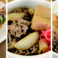 Beef, tofu, onion, red ginger. Add soft boiled egg for an addotopnal charge.