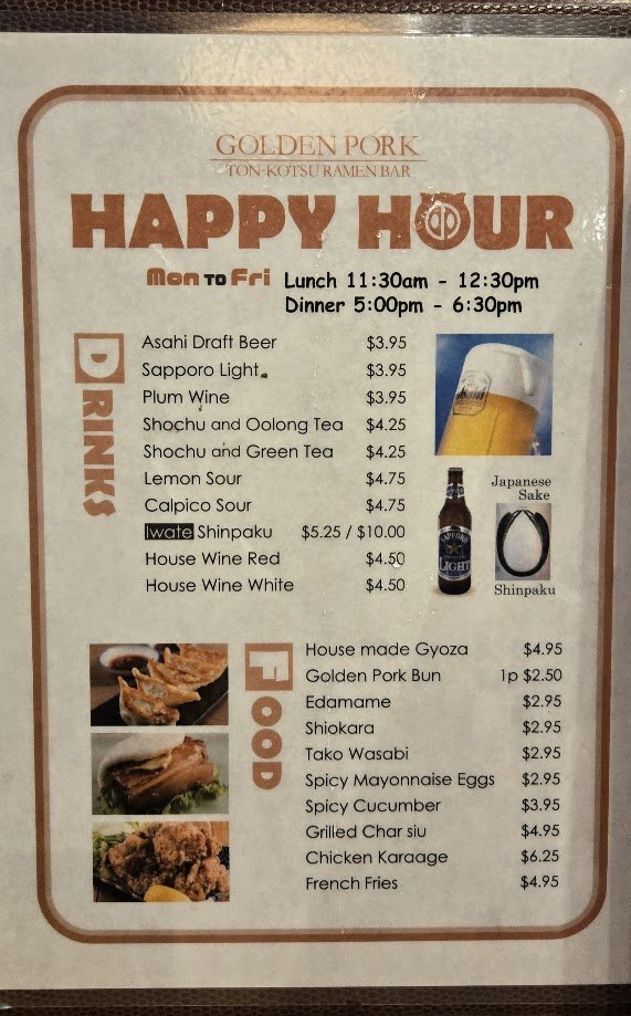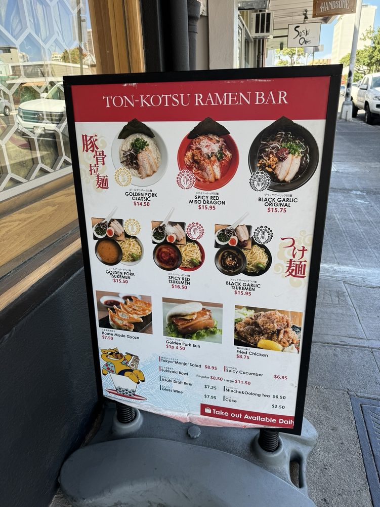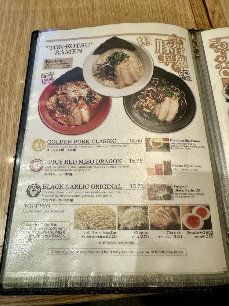 Welcome to the Golden Pork Tonkotsu Ramen Bar, a culinary gem nestled in Honolulu. This ramen haven specializes in rich, flavorful tonkotsu ramen, delivering authentic taste with every bowl. The Golden Pork Classic Ramen stands out with its melt-in-your-mouth char siu, paired beautifully with fresh green onions and earthy wood ear mushrooms, all for just $15.50.
